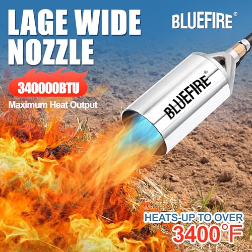 Bluefire Propane Torch Weed Burner Torch for Propane Tank 340000 BTU Heavy Duty Weed Torch with Self Ignition on 1lb Small Propane Tank Cordless for Roofing Flame Thrower Start Fire Ice Snow Melting
