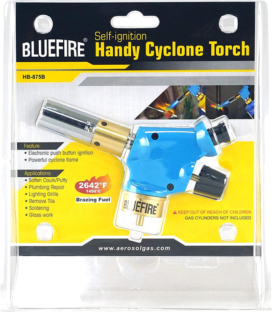 BLUEFIRE Handy Cyclone Torch Head Portable Brass Gas Torch Manual Ignite Fuel by MAPP MAP PRO Propane Gas Cylinder for Soldering Welding Plumbing Repair Lighting Grills Glass Work Remove Tile DIY